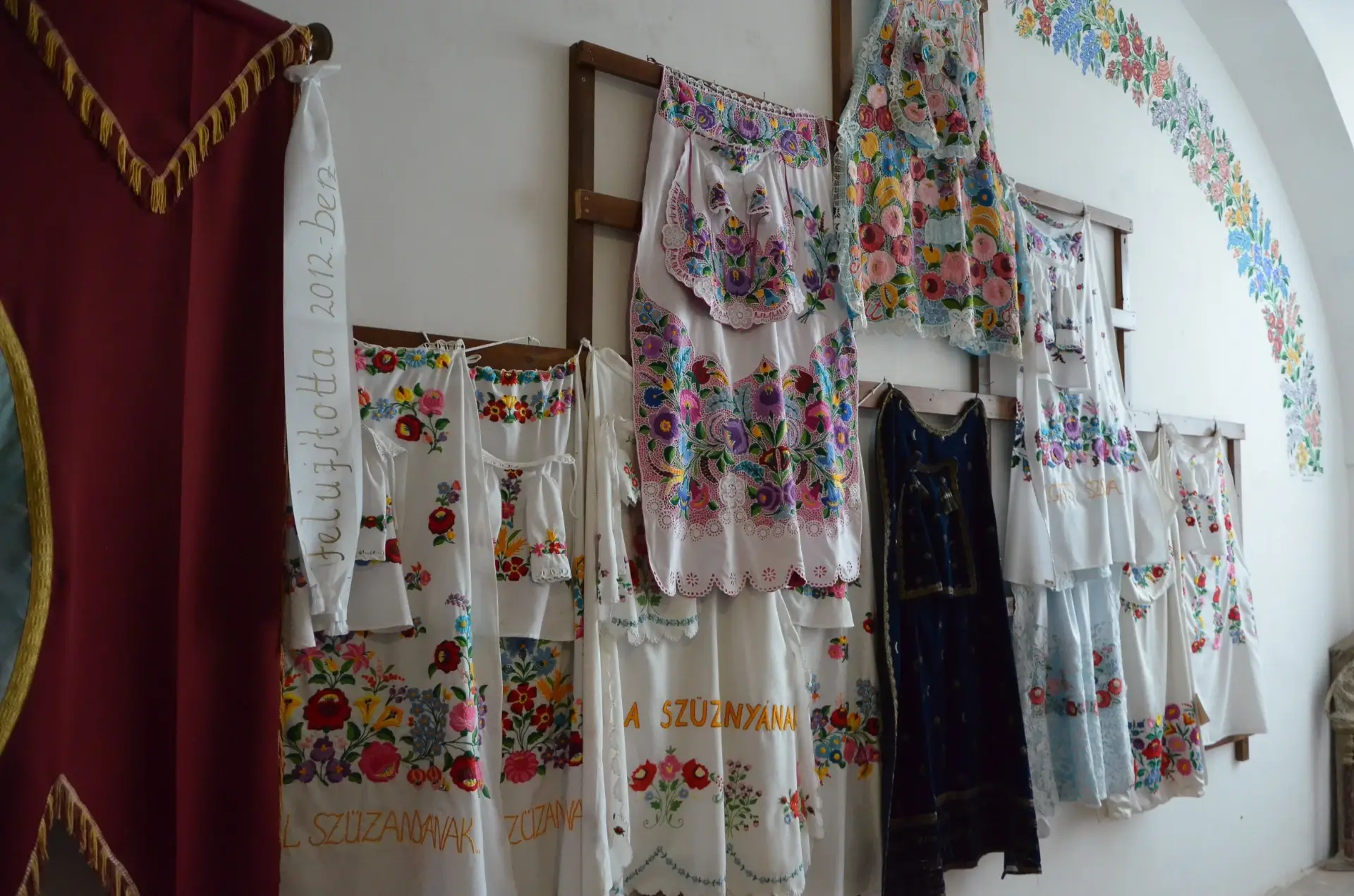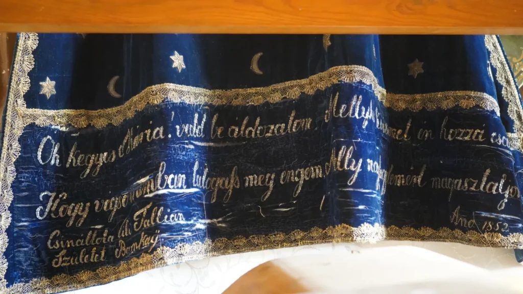 A Szentélyben található szépen faragott, festett Szűz Mária szobrot a legenda szerint Kalocsáról hozták el az angyalok. A Szűzanyát a liturgiának megfelelően öltöztetik. Első ízben Széchenyi Katalin grófnő 1747-ben öltöztette díszes ruhába. Csodatévő ereje miatt a hálás hívek újabb és újabb ruhával köszönik meg, hogy segített rajtuk. A Mária múzeumban már több mint 300 ruha található. A legtöbb Magyarországról érkezett,illetve a határotúli magyaroktól,de vannak Írországból, Kanadából, Kínából Trolból származók is. Andocs az ország egyik legjelentősebb zarándokhelye, ahová évszázadok óta ezrével érkeznek a hívek. Évente több búcsút tartanak,fő búcsú a Magyarok Nagyasszonya és a Kisasszonyi búcsú.